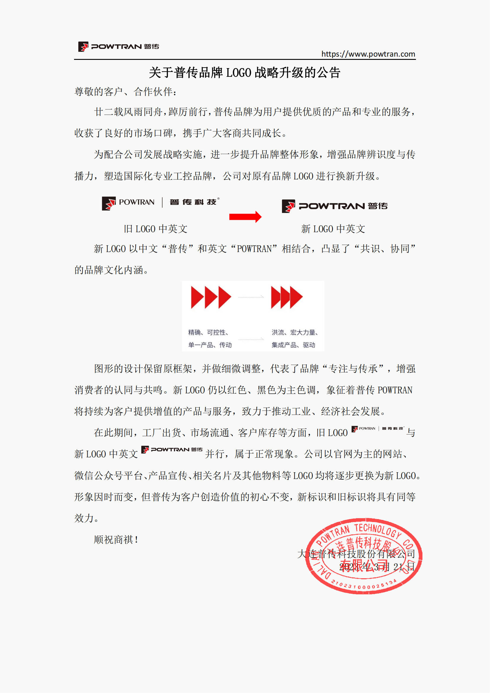 關(guān)于普傳品牌LOGO戰(zhàn)略升級的公告
