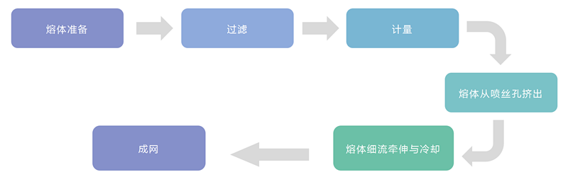 熔噴布生產(chǎn)工藝過程如下圖所示: